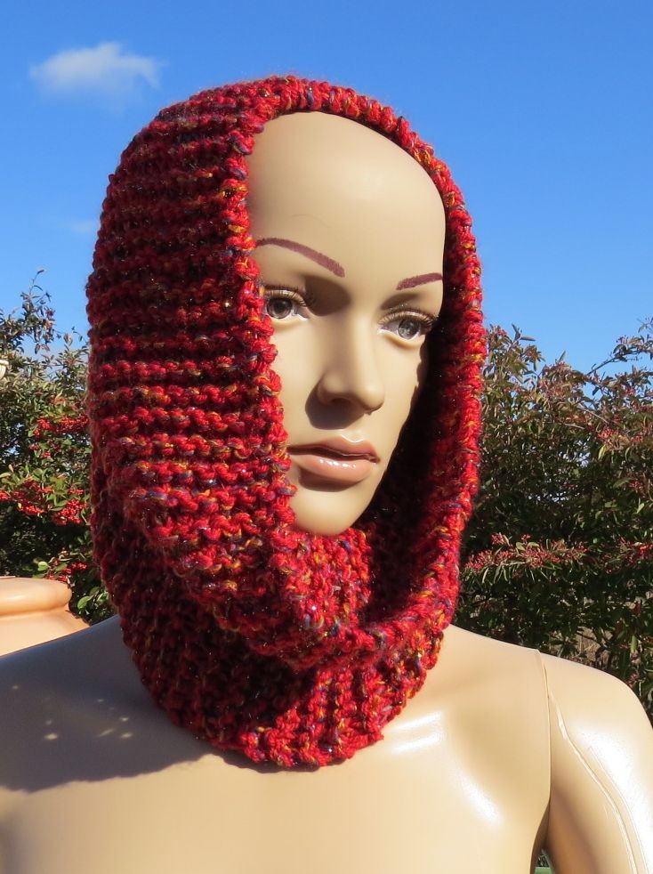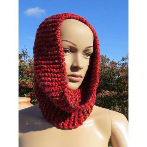 Ce snood tricoté au point mousse est très chaud et tout doux.